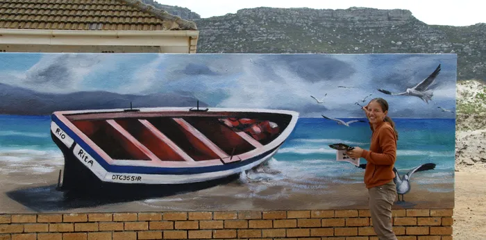 Fish Hoek artist Christine Andrews is busy with a mural at Fish Hoek Beach. The initiative was launched by executive committee member of the Fish Hoek Valley Ratepayers’ and Residents’ Association Dr Peter Scott and his wife, Lyn. The paint was sponsored and a BackaBuddy campaign was started at www.backabuddy.co.za/christine-andrews to pay Ms Andrews.
