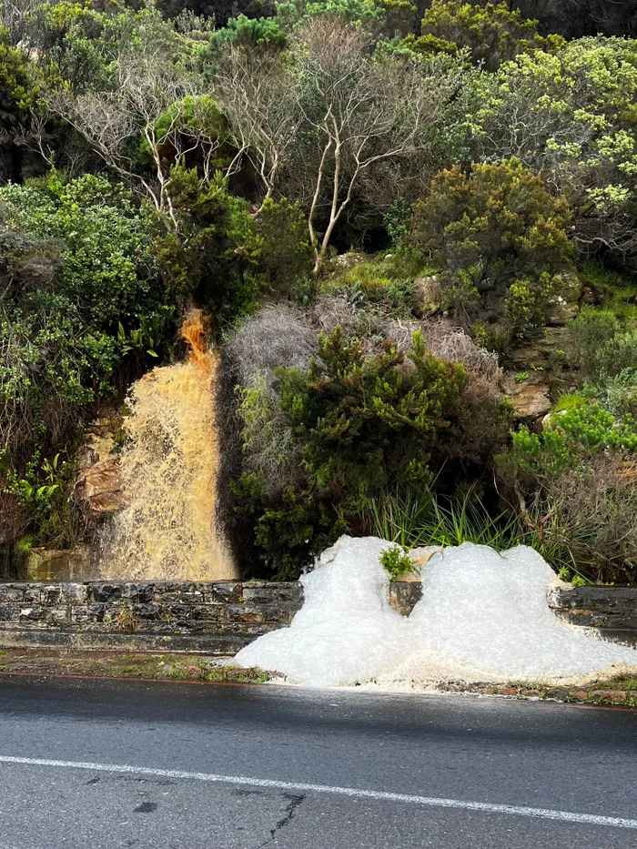 A waterfall on Boyes Drive is in full flow after the weekend rains.