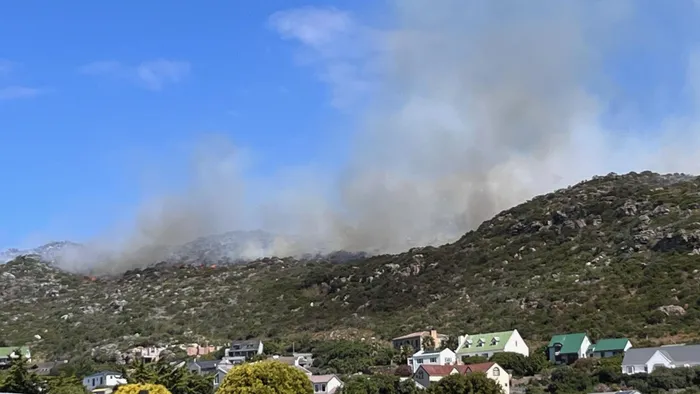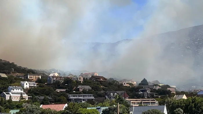 Firefighters from the City, Table Mountain National Park, and NCC Environmental Services are battling a vegetation fire along the Glencairn Expressway, with strong winds fanning the flames across the mountain slopes.