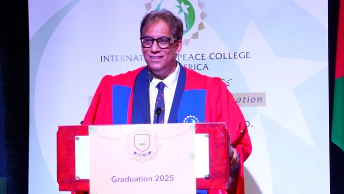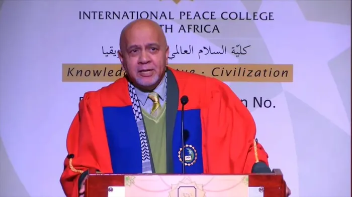 Dr Iqbal Survé delivers a speech at the 2025 graduation of the International Peace College South Africa.
