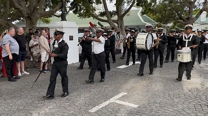 The SA Navy Band arriving at Jubilee Square for the annual Switching on of the Christmas Lights.