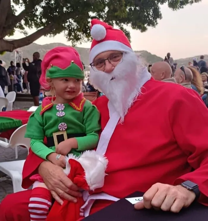 Three-year-old "elf" Talia Marais with Father Christmas, Mark Lockyer.