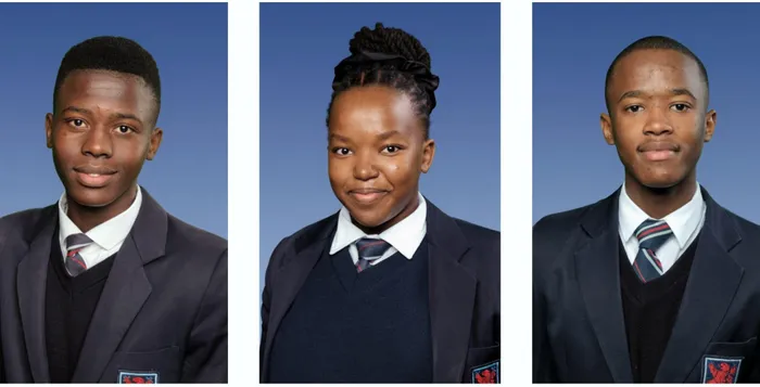 Simon’s Town School top achievers, from left: Lubanzi Mgenge 86.9%, Simzukise Mafolwane 85.1%, and Libhongo April 83.6%.