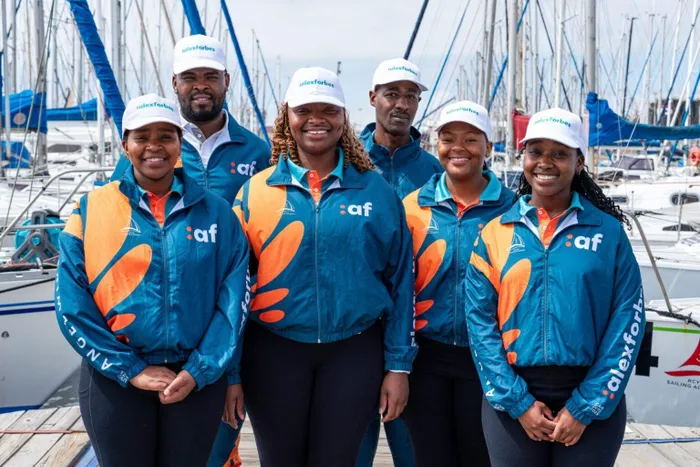 Winners of the 2025 Cape2Rio race in the back from left are sailors, Sibusiso Sizatu, skipper, Tshepo Renaldo Mohale, first mate, and in front from left are Yonela Temela, Philasande Gwala, Yobanathi Klaas, reserve, and Sesona Ntsaluba.