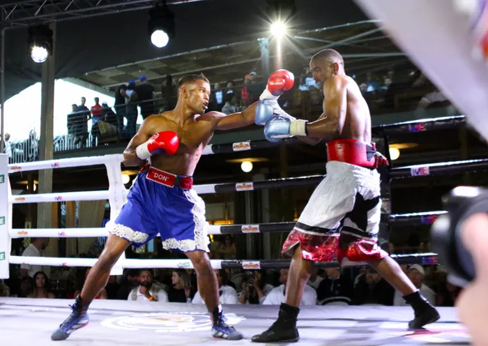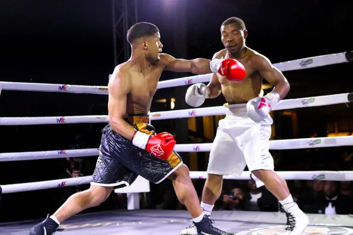 Shameeg Williams works his jab in his fight against Mvuzo Kotobe.