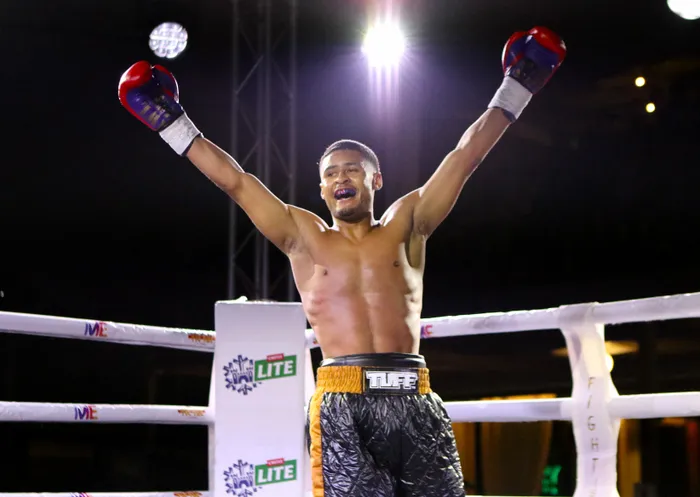 Mika-eel Jacobs celebrates his second round stoppage win.