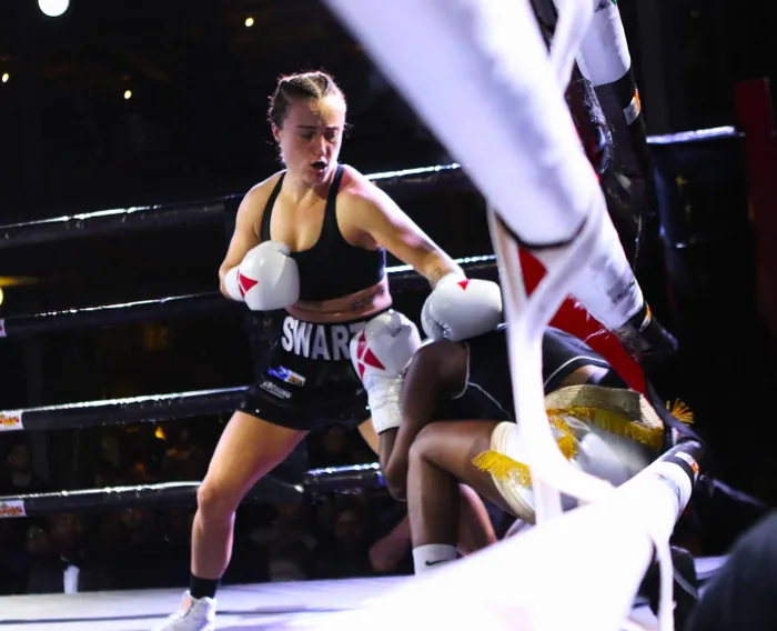 Caleigh Swart puts finishing touches in her fight against Seani Morite.